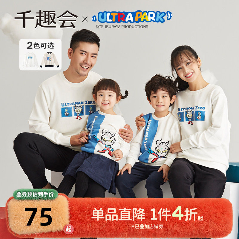 千趣会奥特曼联名秋季款童装卫衣纯棉母女装亲子装男女童卫衣