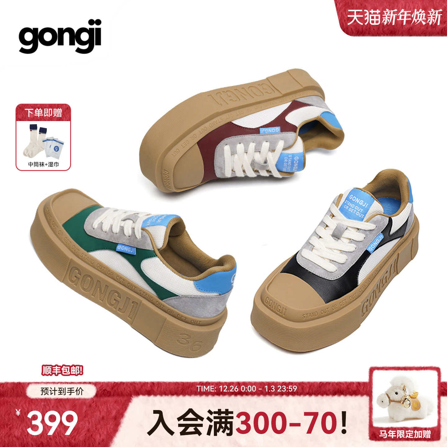【沈月同款】GONGJI方头厚底板鞋男女同款增高小众鞋子德训鞋