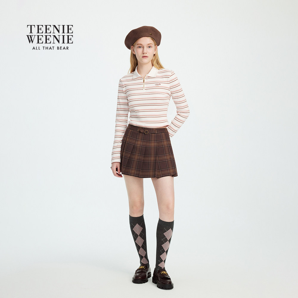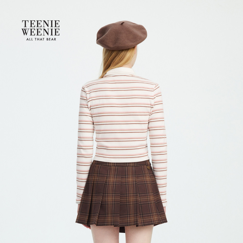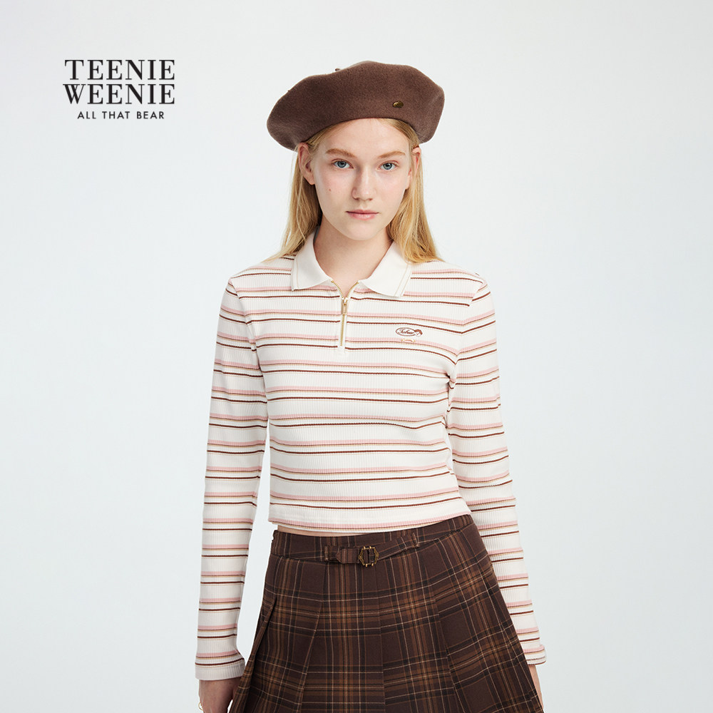TeenieWeenie小熊女装T恤2025秋季新款时髦宽松条纹长袖短款上衣