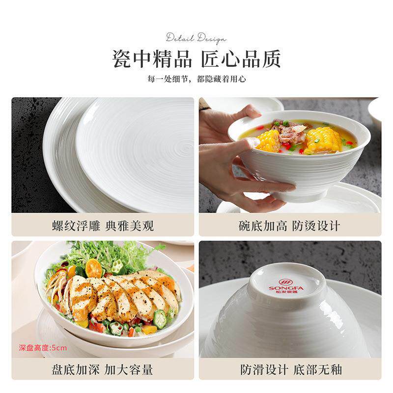 松发瓷器陶瓷碗具米饭碗家用塞纳河新款碗盘套装餐具吃饭专用碗碟