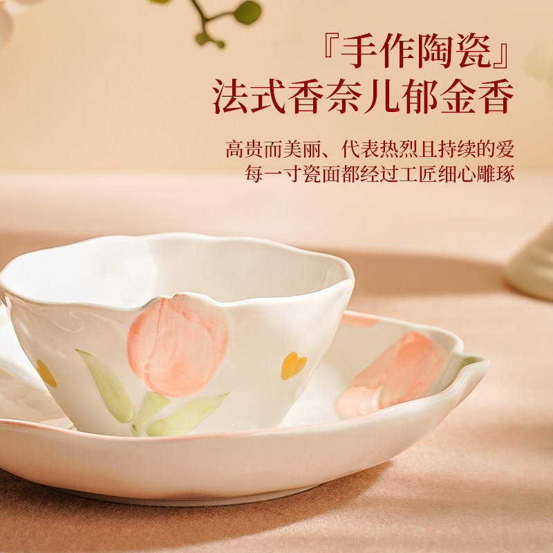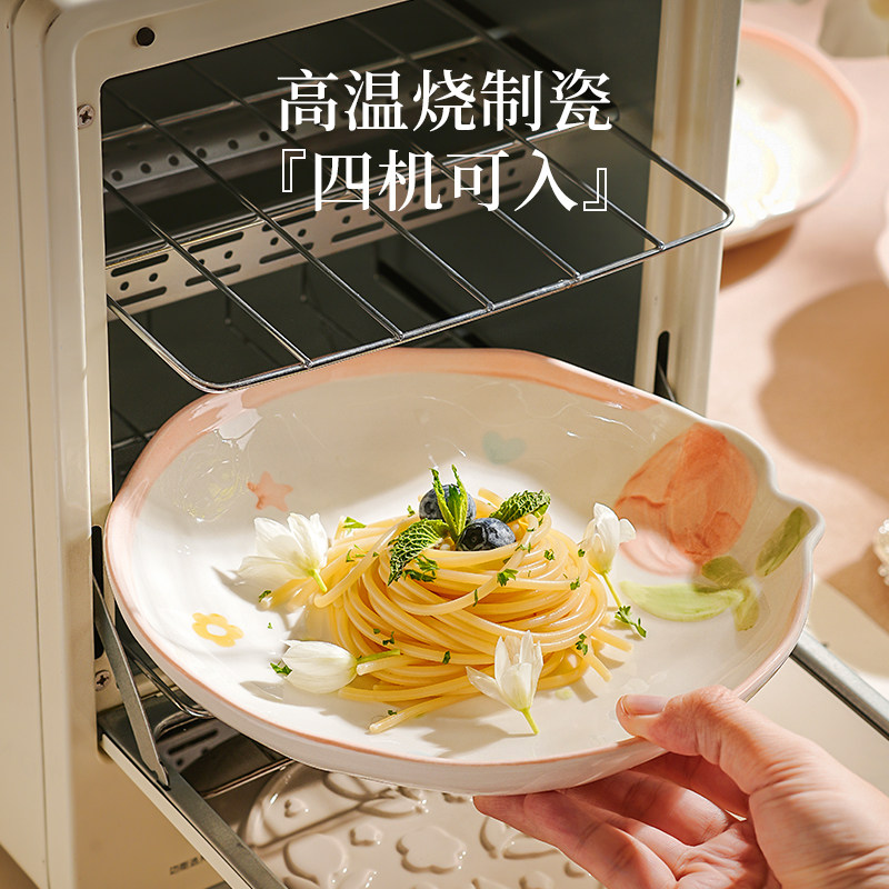 奶油风陶瓷碗家用卡通菜盘子可爱米饭碗汤碗釉下彩儿童餐具耐高温
