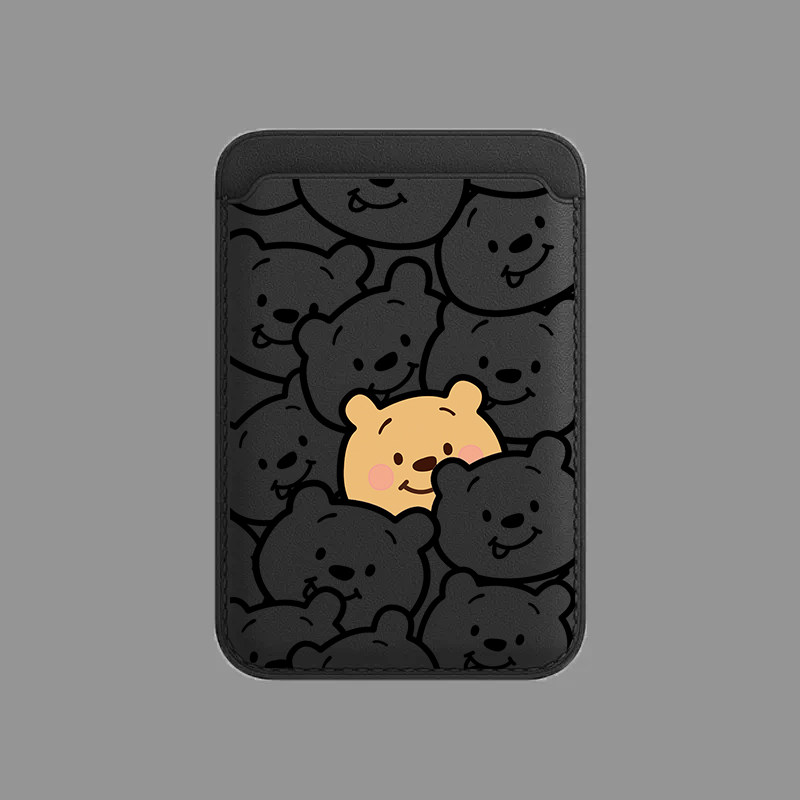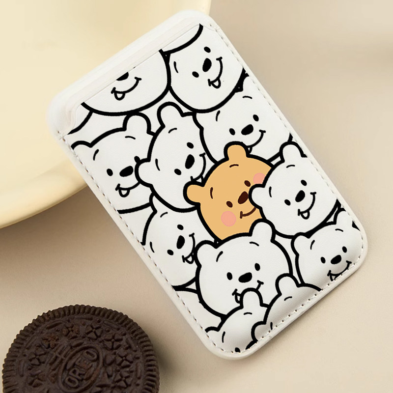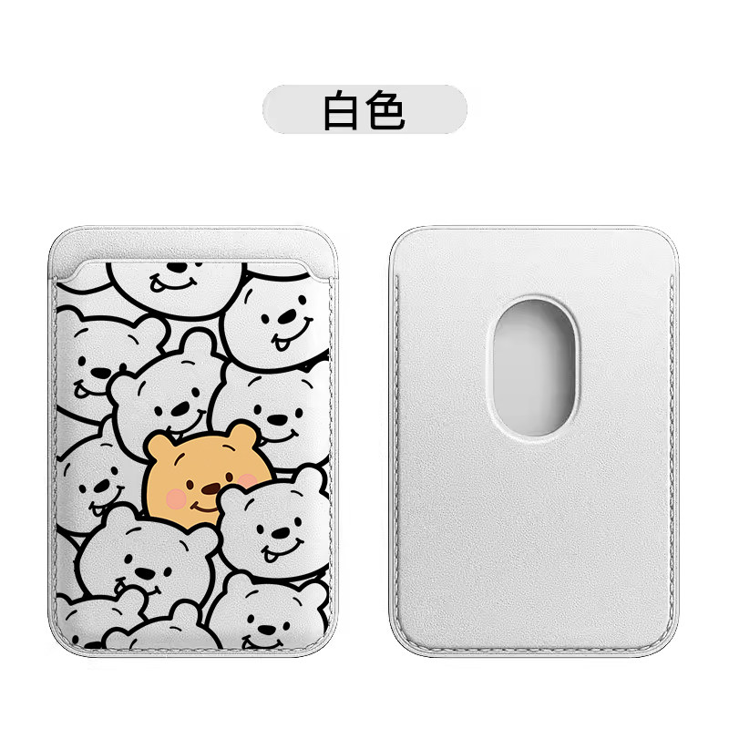 【线条维尼熊】magsafe磁吸卡包适用于iphone15pro皮革卡套式小众创意14promax真皮质钱包配件mini插卡槽门禁