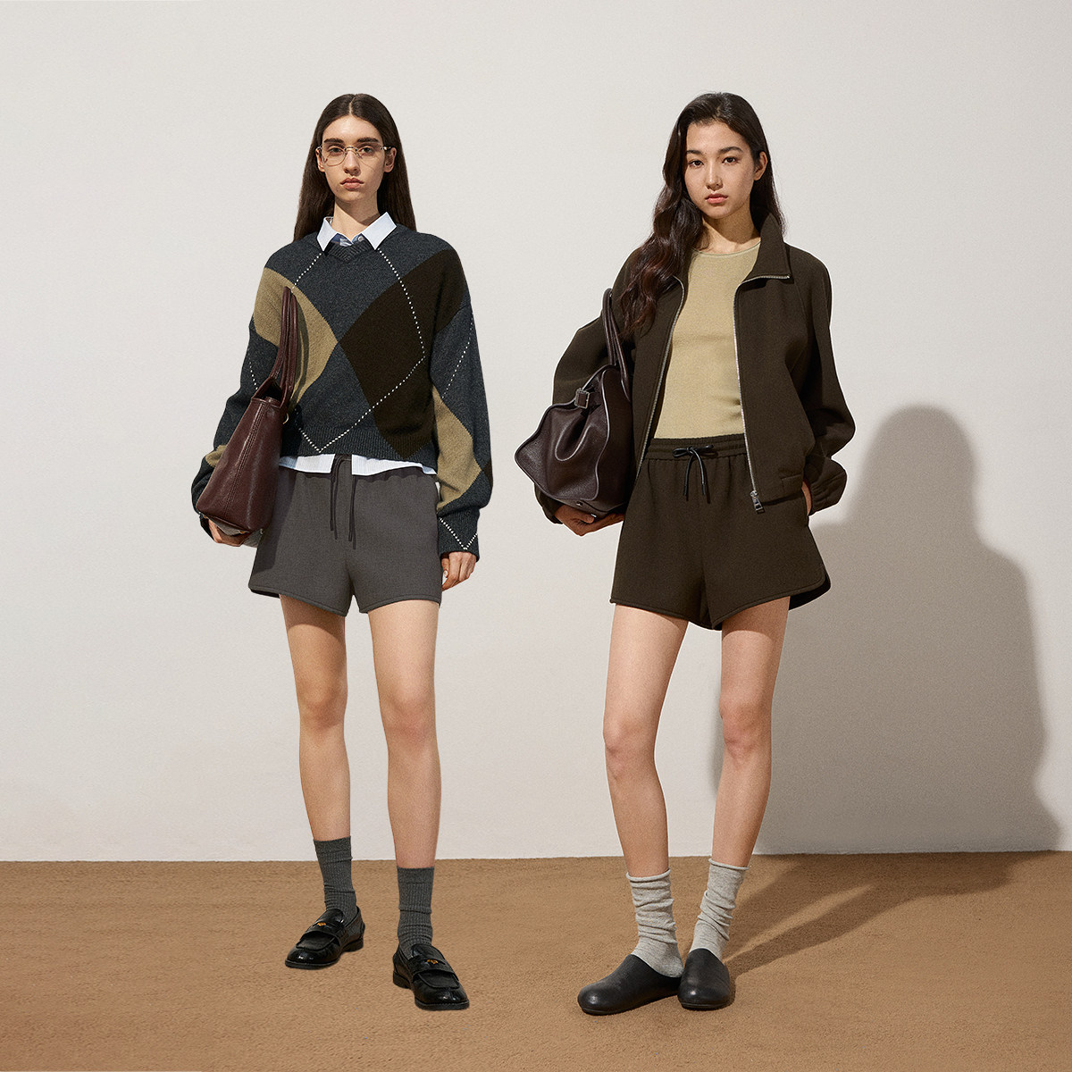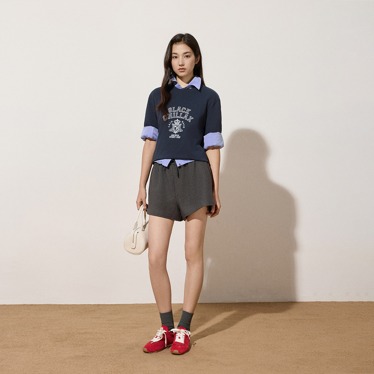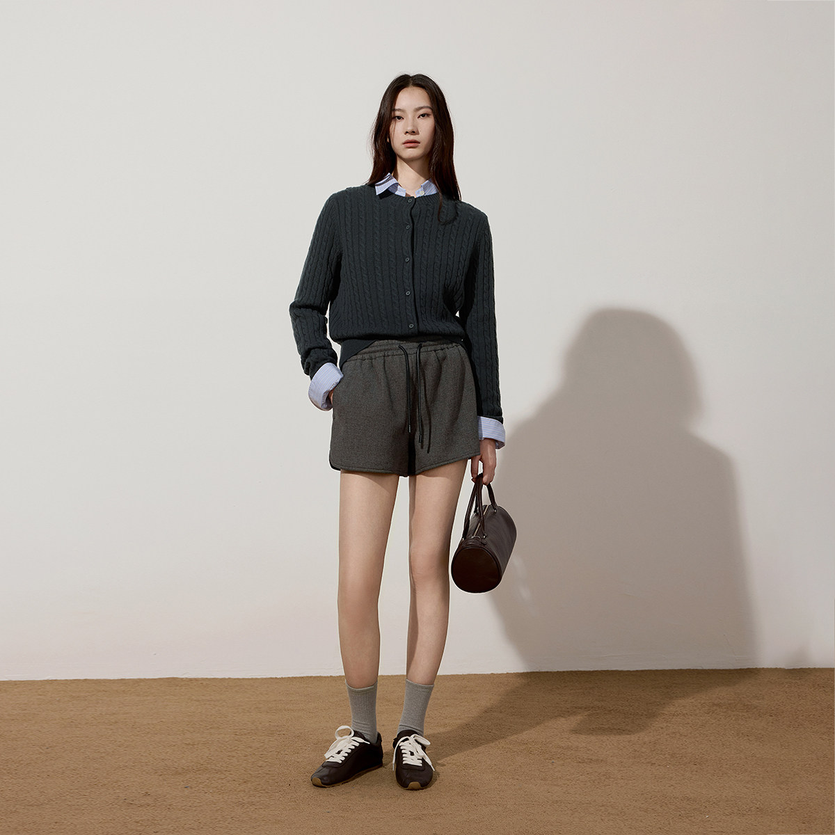 【新品】OCHIRLY欧时力 意大利精纺抽绳直筒短裤松紧腰休闲2025秋