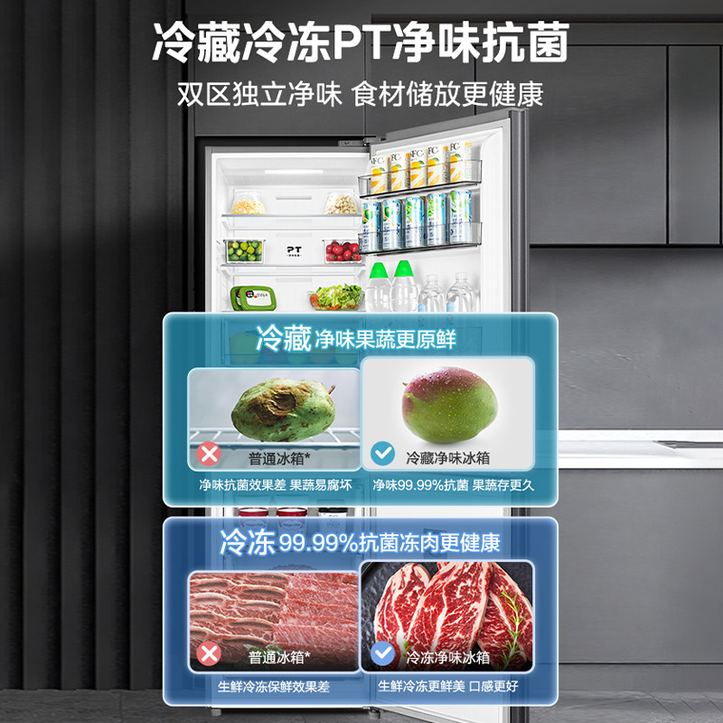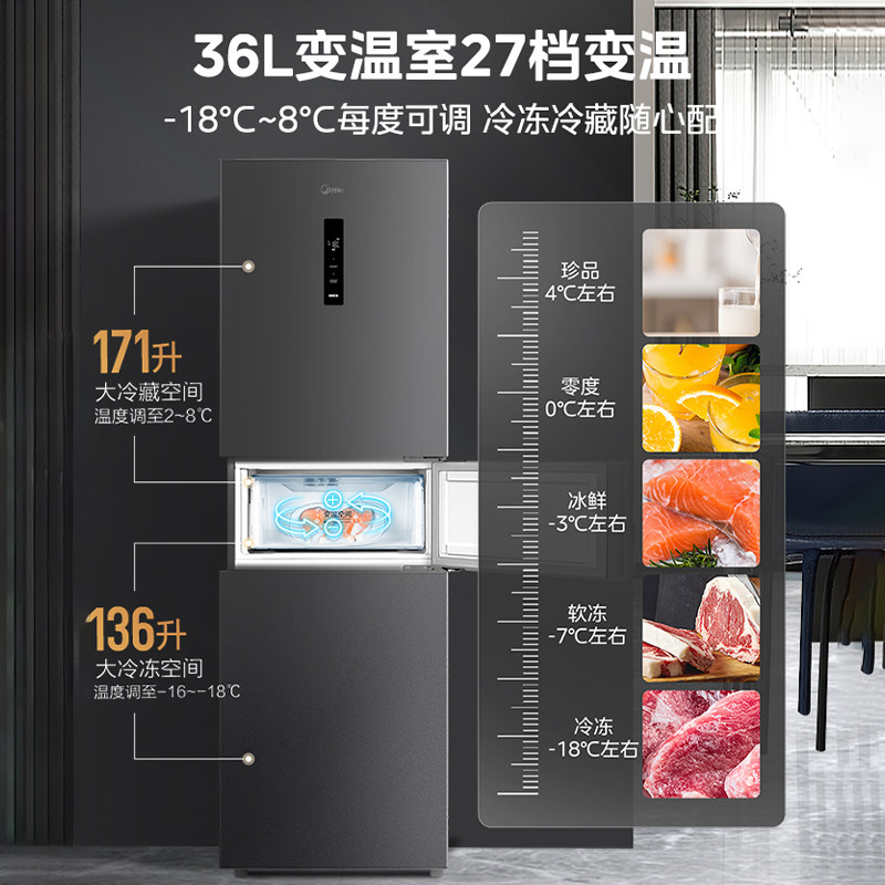 【换新补贴】美的283三开门风冷无霜家用一级能效小型租房宿舍用