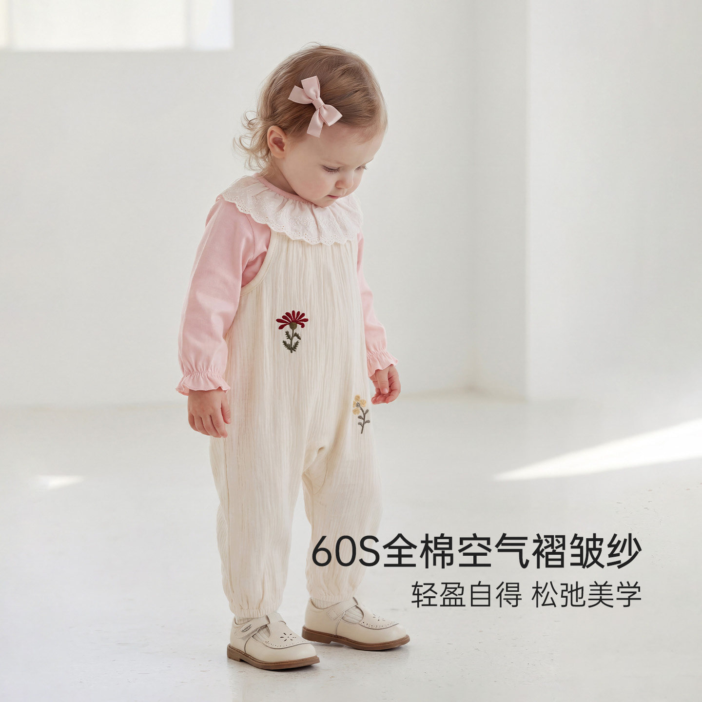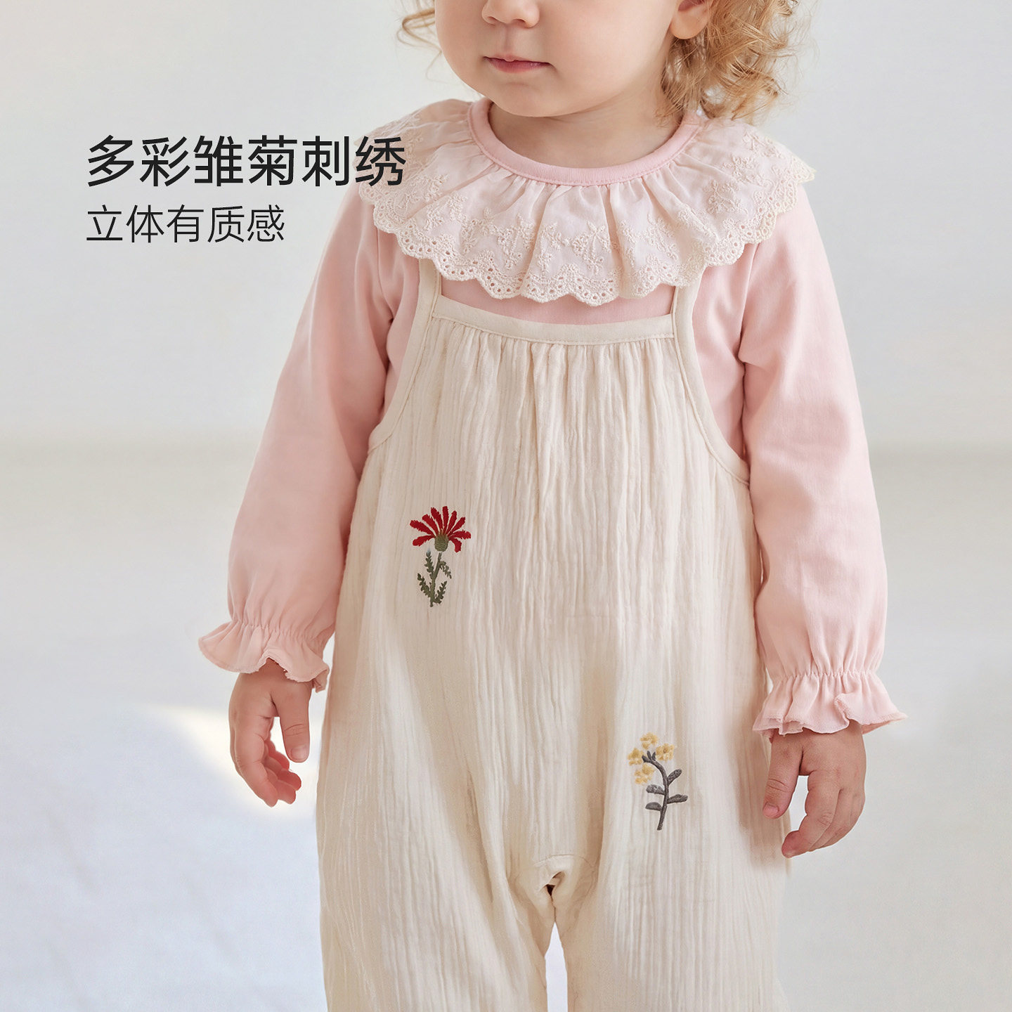 babylove女宝宝背带裤春秋纯棉纱布裤子婴幼儿洋气休闲裤拾花日记
