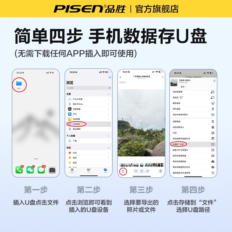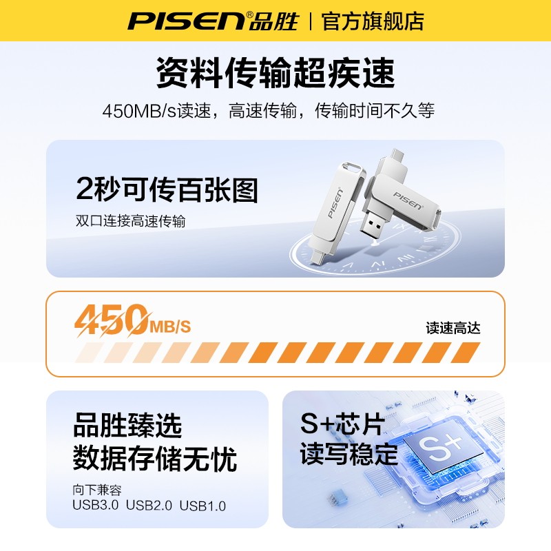 品胜苹果手机u盘typec双接口大容量电脑两iPhone专用内存扩容优盘