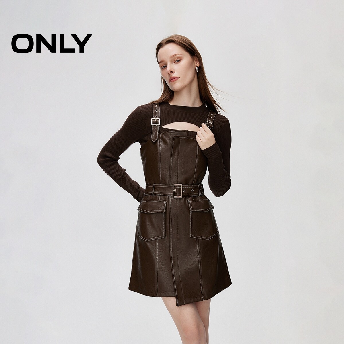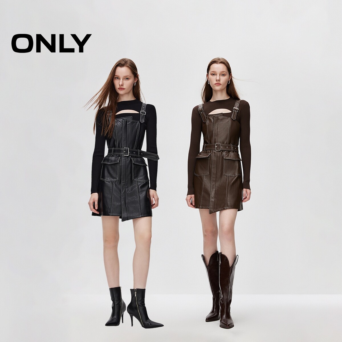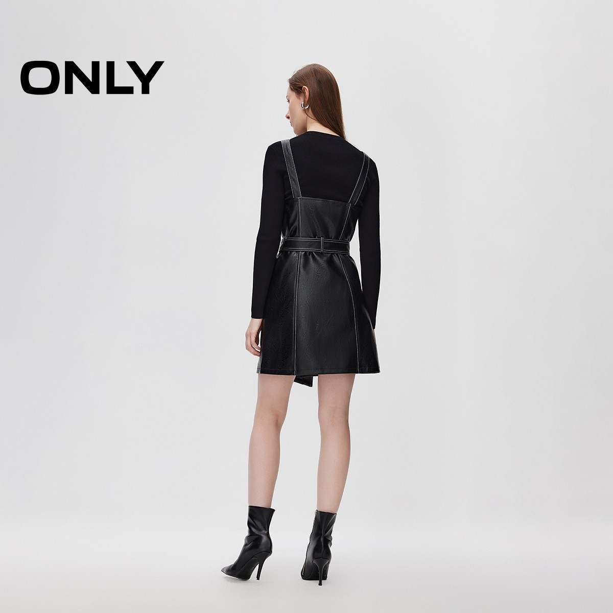 ONLY春季复古风长袖套装收腰PU短裙连衣裙女|12437Y006