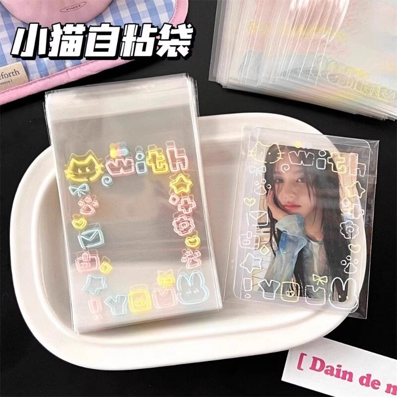 猫咪全家福高颜值自封袋爱豆小卡打包袋OPP自粘袋ins风可爱收纳袋