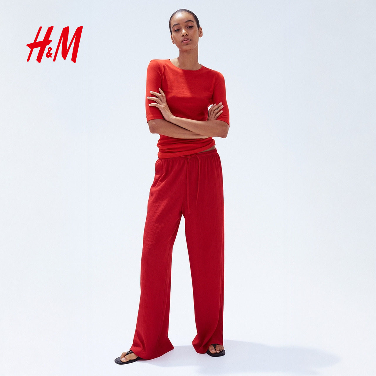 HM女装休闲裤2026春季新款高腰户外出游时尚松紧腰阔腿裤1216645