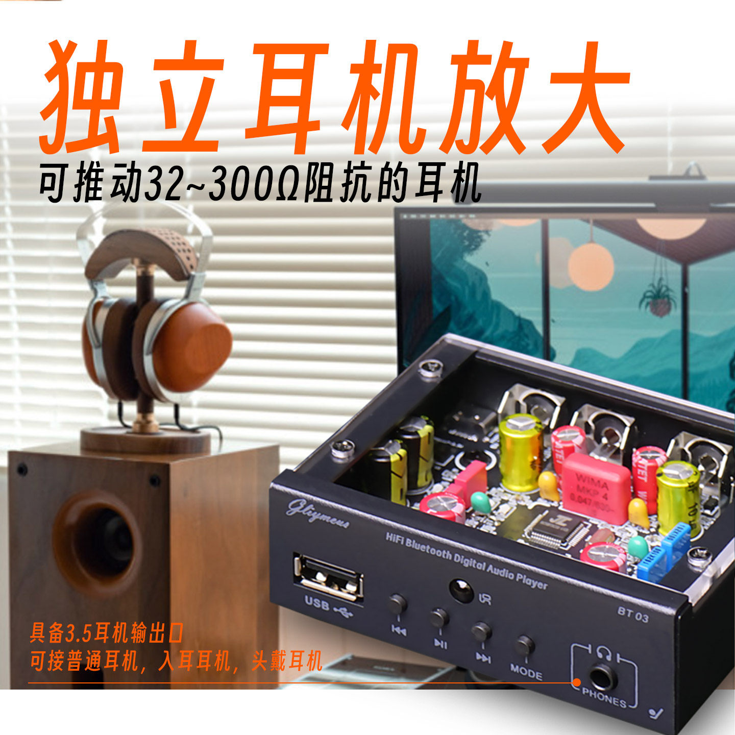 进口元件发烧级HIFI蓝牙播放器无损U盘播放机手机APP收音FM带耳放