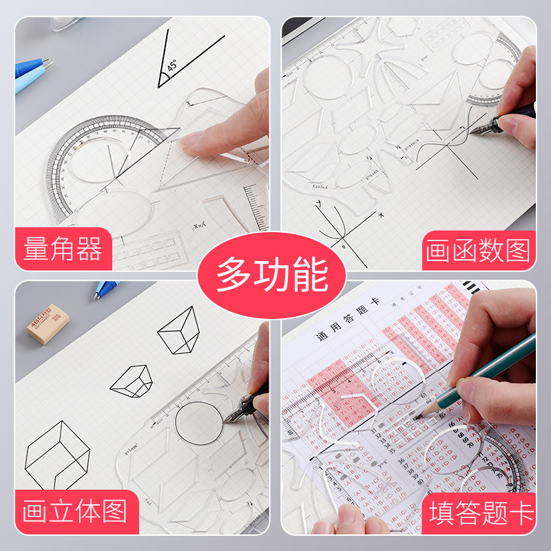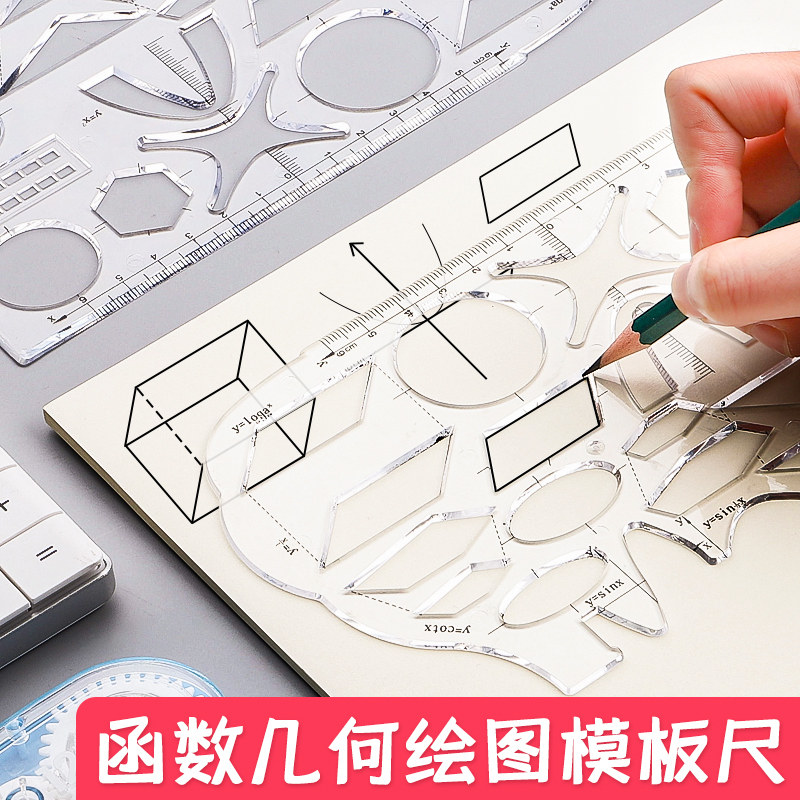 软尺多功能函数几何学习尺套装尺子图形初高中数学小学生画图模板尺绘图高考专用直尺作图工具神器文具软