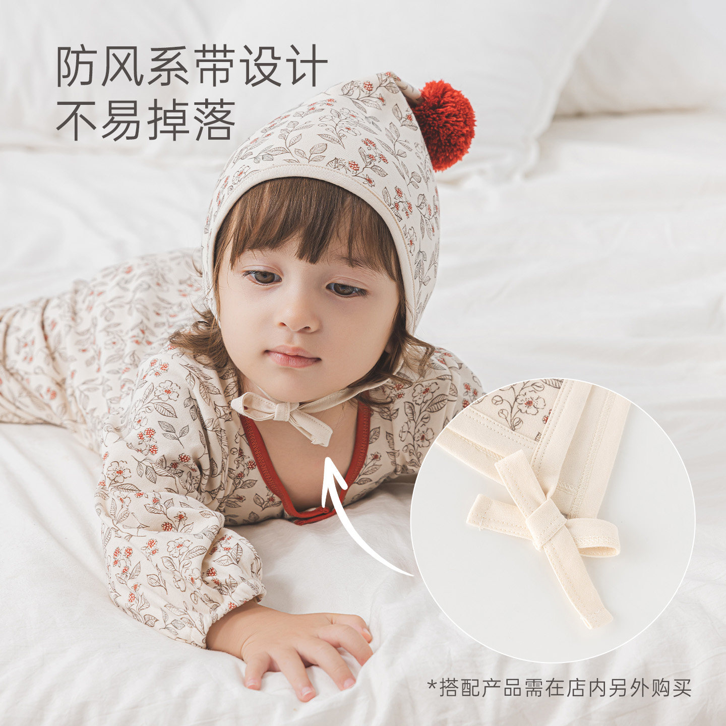 木生棉女宝宝纯棉帽子春秋季婴儿可爱系带护囟门帽外出防风甜美帽