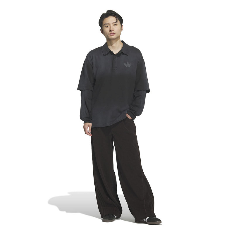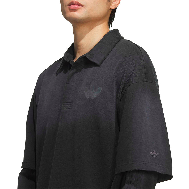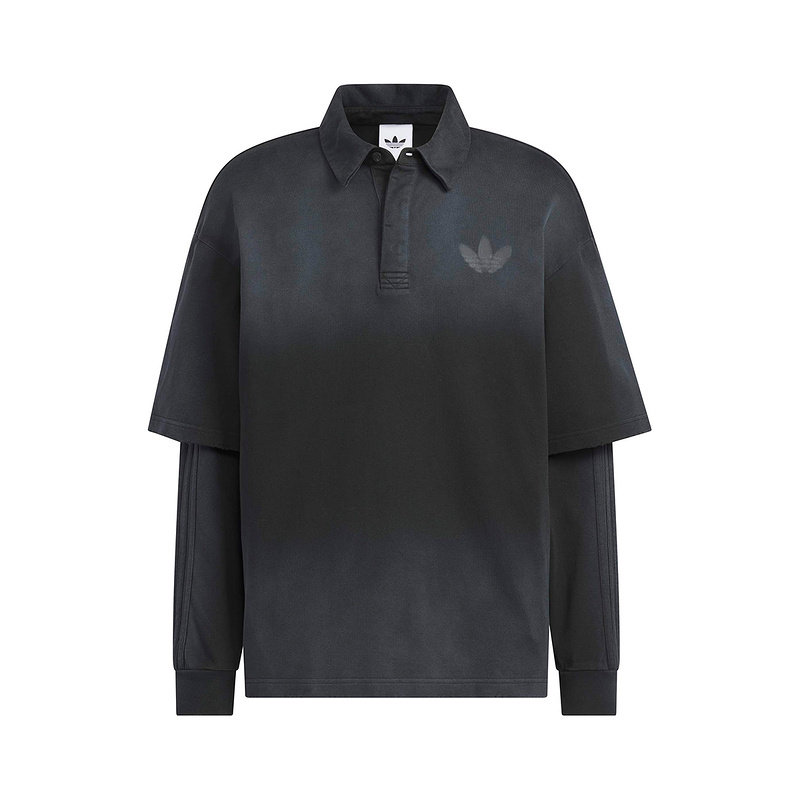 adidas阿迪达斯棉质假两件黑色渐变POLO衫2026春男长袖T恤 KR5053