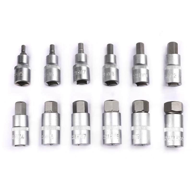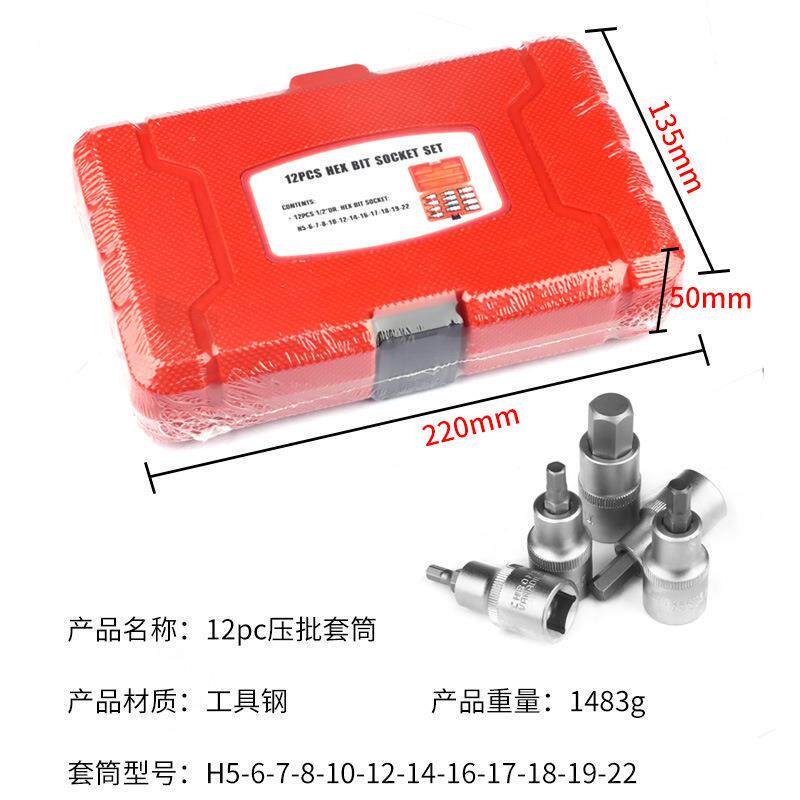 厂家直销12PC 1/2规格工具钢滚花压批套筒 气动汽修组套五金工具