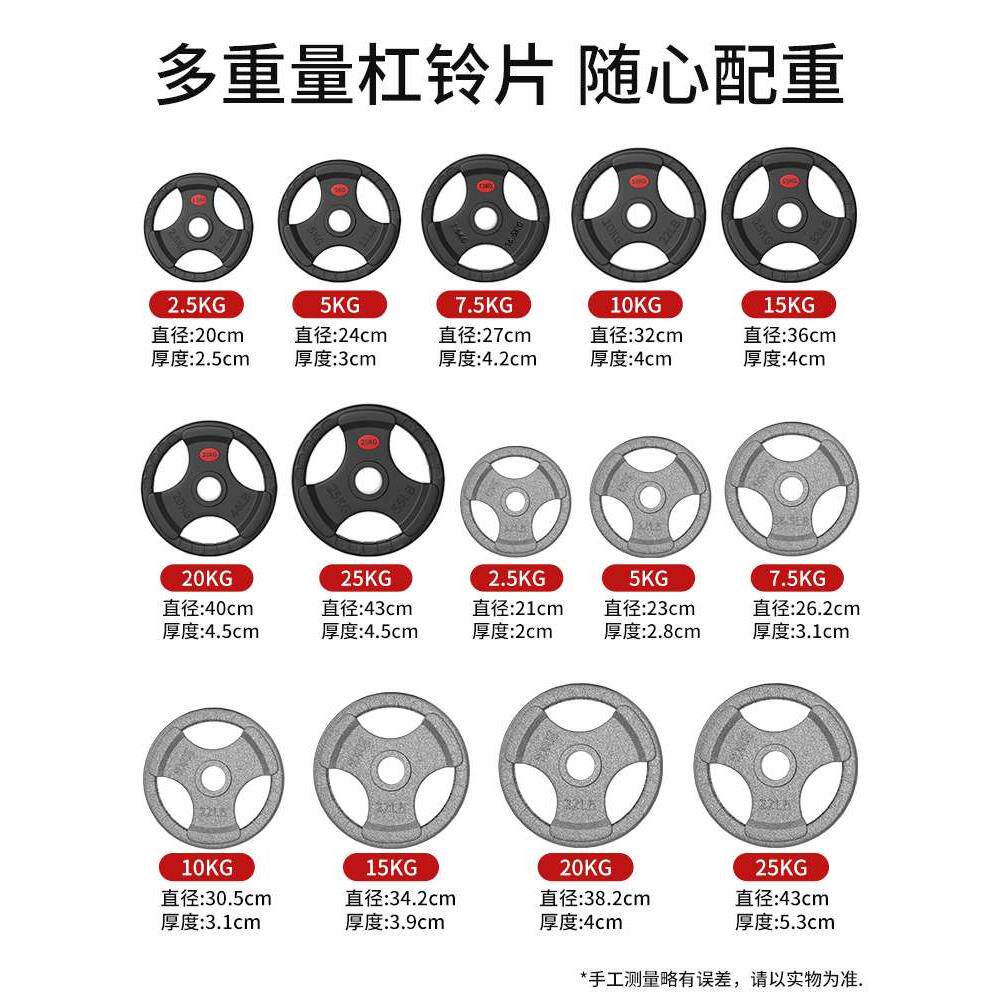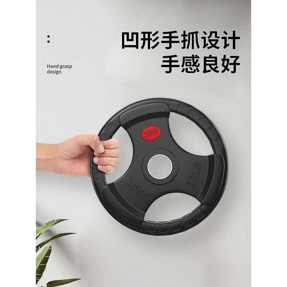 纯铸铁质杠铃片哑铃片金属烤漆包铁三孔手抓包铁奥杆小孔大孔家用