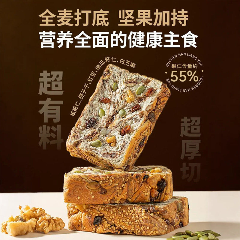 全麦面包坚果吐司官方旗舰店0脂无糖减脂肥专用早餐整箱健康零食