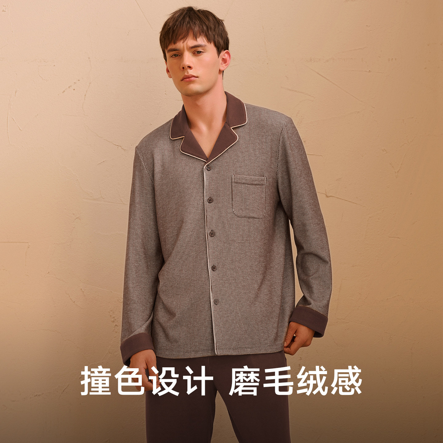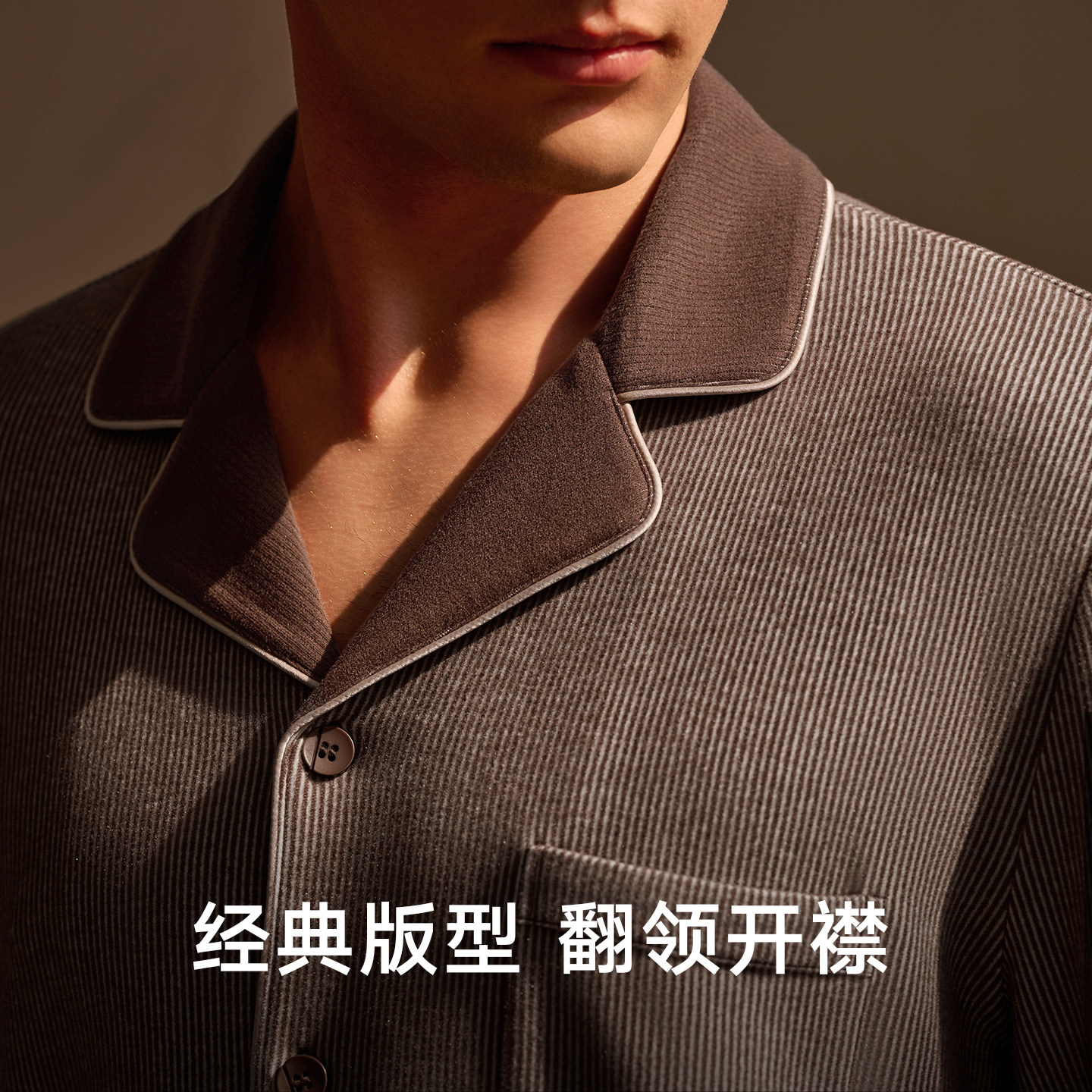 曼妮芬26秋冬舒适男士家居服套装秋冬睡衣睡裤经典翻领度假起居服