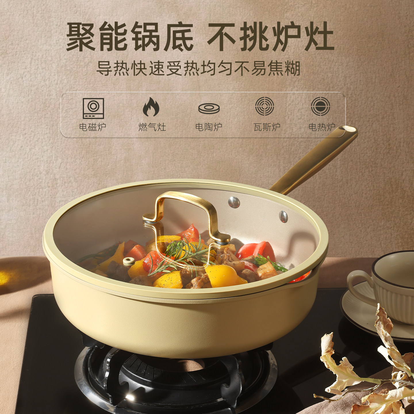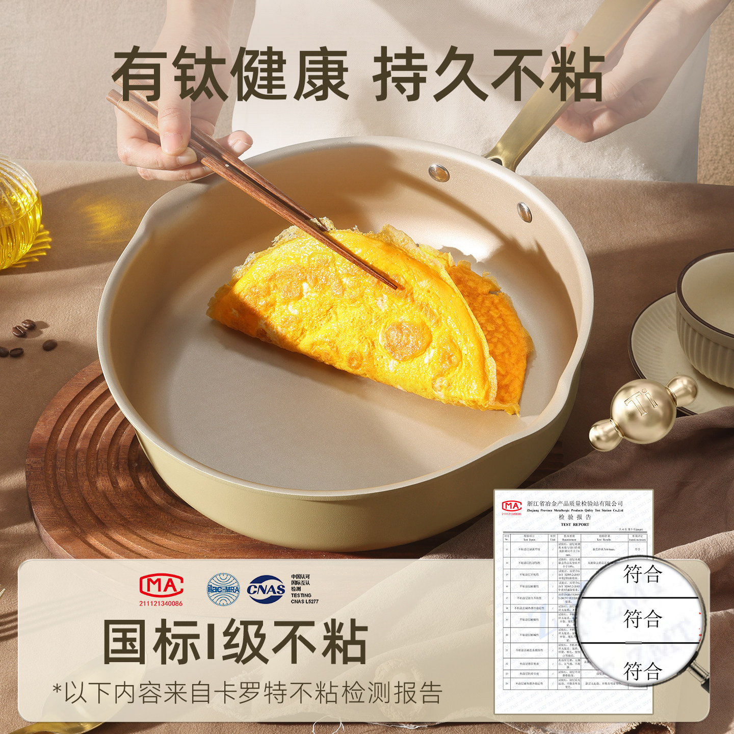 卡罗特不粘锅炒锅家用钛锅电磁炉专用炒菜轻量不沾平底煎锅燃气灶
