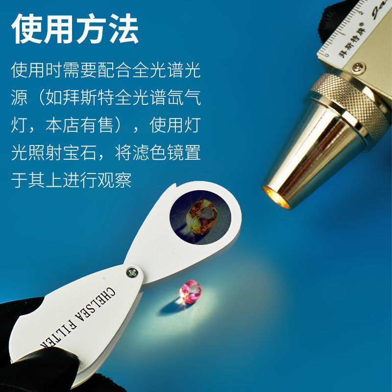 查尔斯滤色镜鉴定玉石翡翠染色区分海蓝宝石托帕石铜锈高清单片