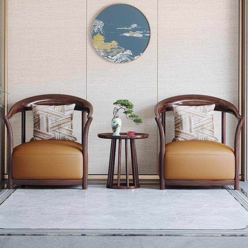新中式乌金木实木休闲椅轻奢客厅太师椅茶椅书房椅小户型阳台家具