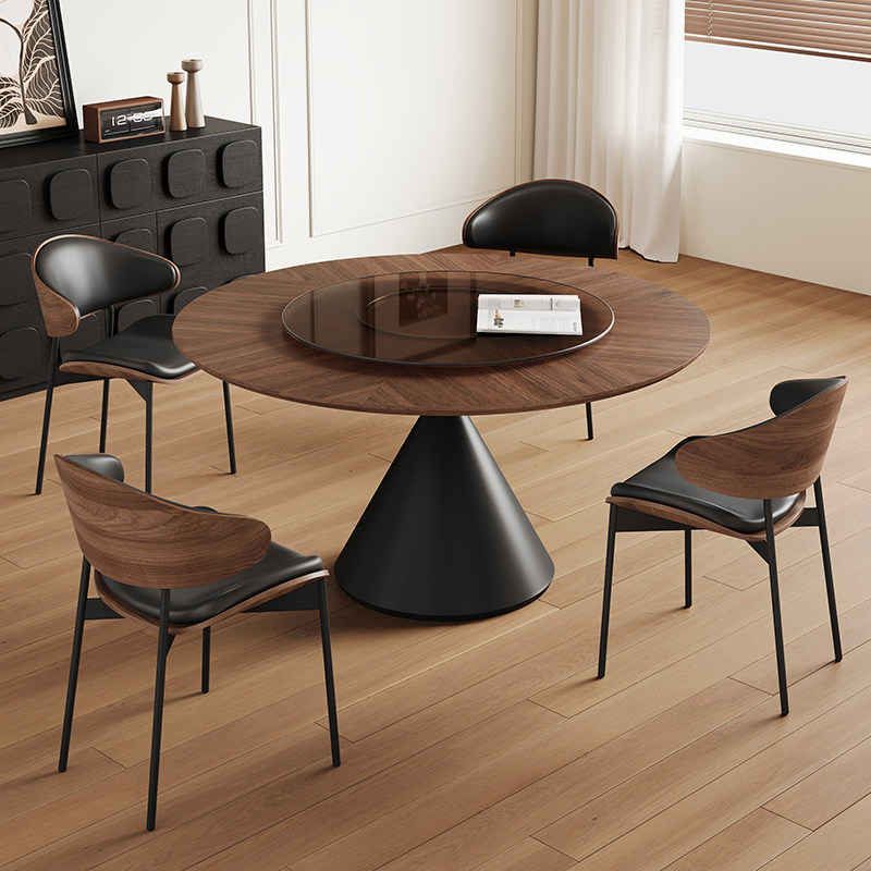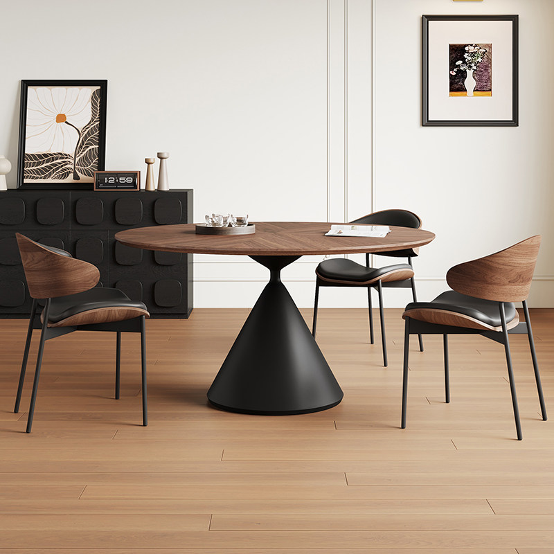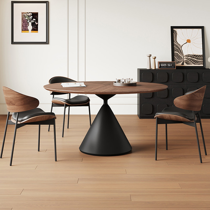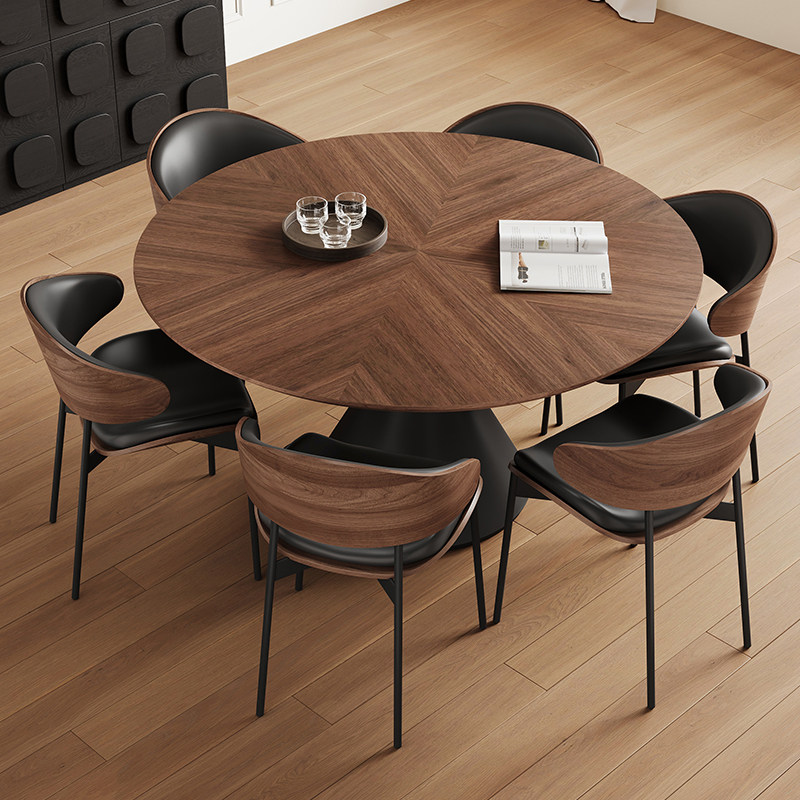 复古实木餐桌圆桌家用小户型客厅2025新款1米中古风实木面洽谈桌