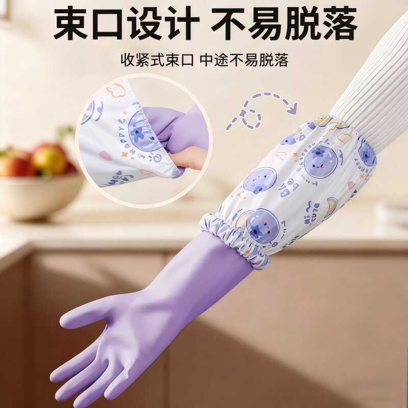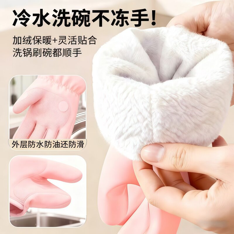 冬天洗碗手套加绒加厚保暖款男女厨房耐用橡胶洗衣服加长家务手套
