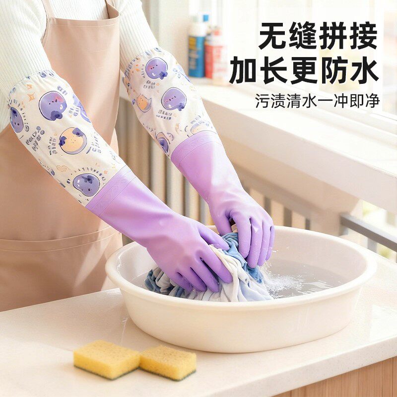 洗碗手套女加绒冬天家务厨房耐用防水加厚橡胶乳胶洗衣服刷碗加长