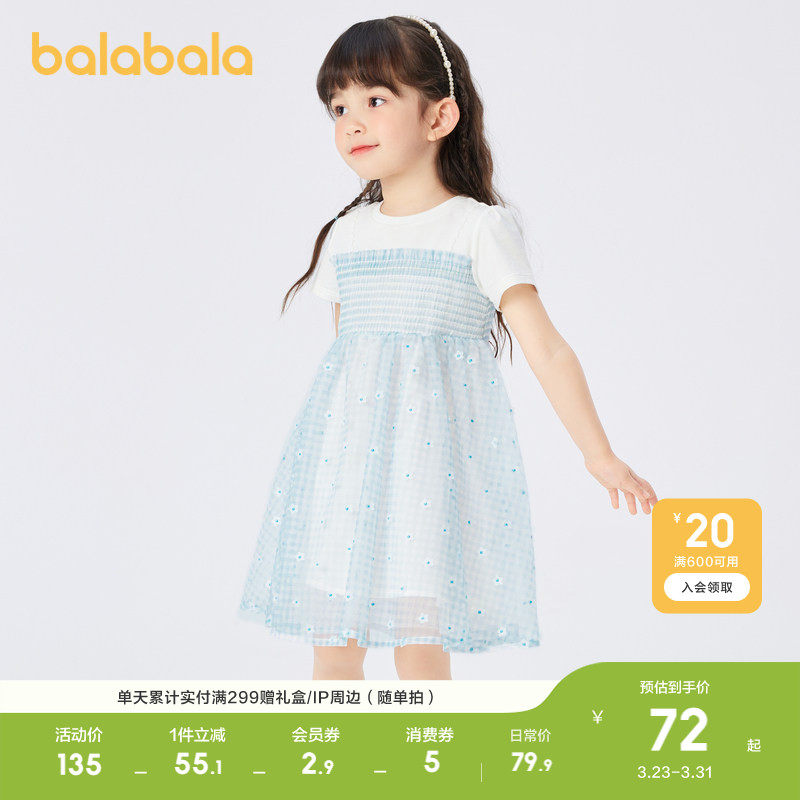 巴拉巴拉童装女童公主裙夏季新款儿童连衣裙小童宝宝裙子网纱裙潮