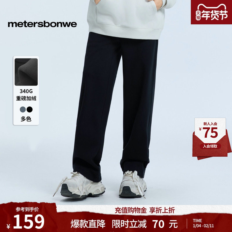 美特斯邦威休闲裤男2025冬新款垂感直筒裤抓绒修身长裤子