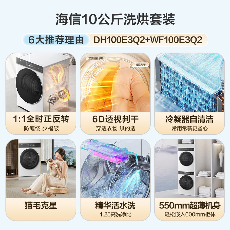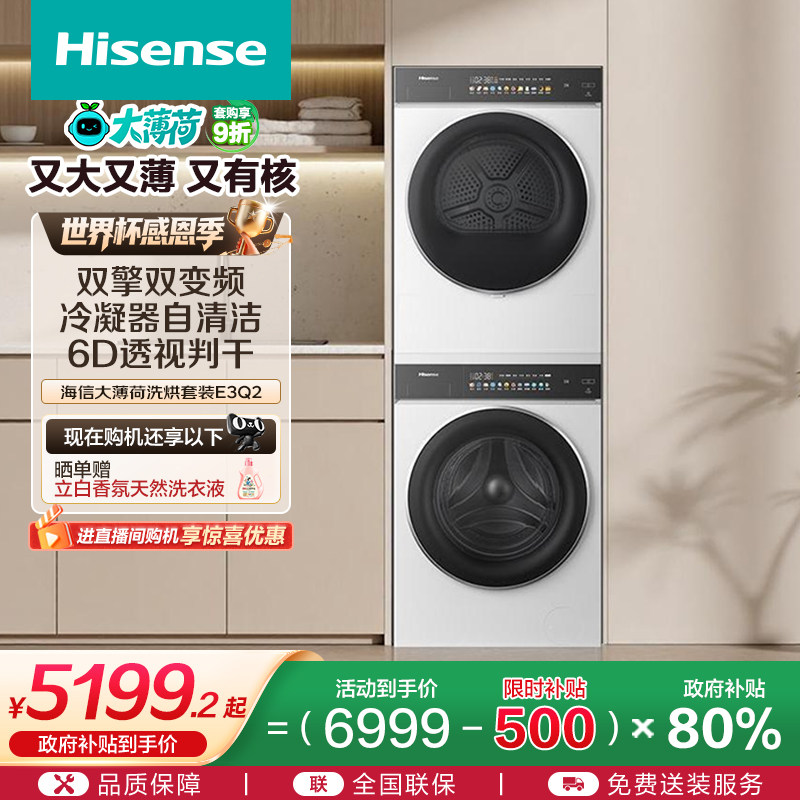 海信大薄荷10公斤滚筒洗烘套装家用健康活水洗衣机热泵烘干机E3Q2