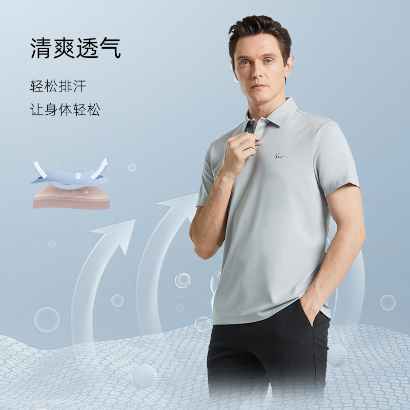 【高弹速干t】SHANSHAN杉杉中年男短袖T恤夏季商务休闲纯色polo衫