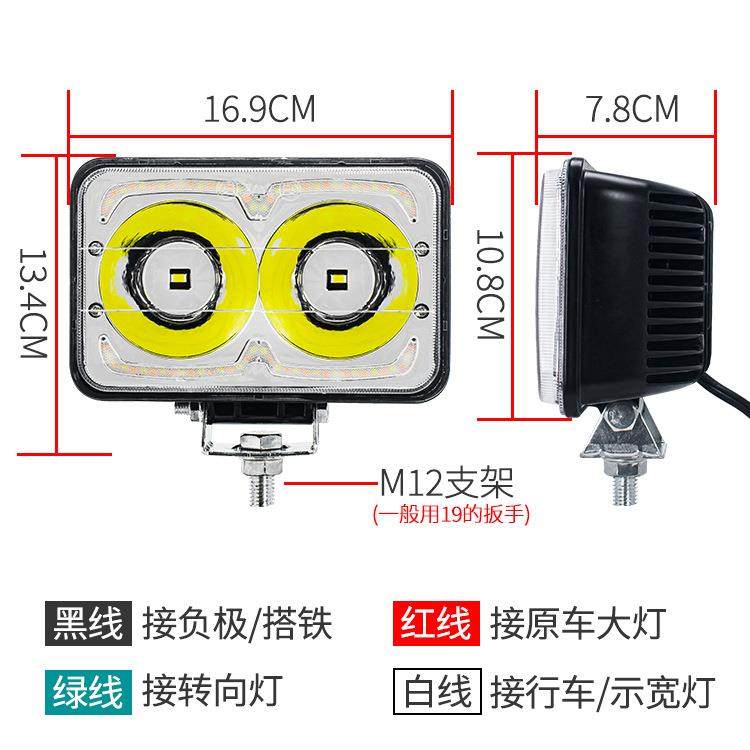 5寸方形厚铝壳超高亮LED大灯双反光杯超聚光射灯12-60V改装工作灯