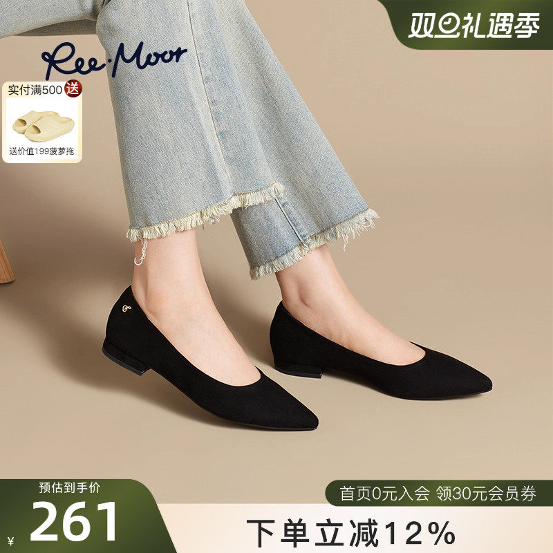 REEMOOR睿慕2025秋季新款纯色尖头浅口单鞋气质通勤增高跟鞋女鞋