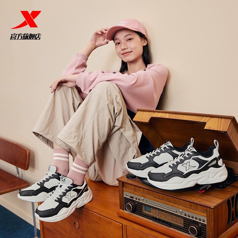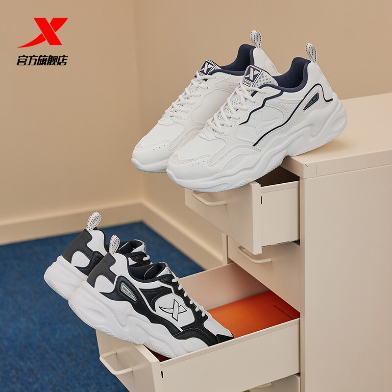 特步秋冬休闲鞋男鞋厚底增高情侣轻便运动鞋软弹平底鞋革面女鞋子