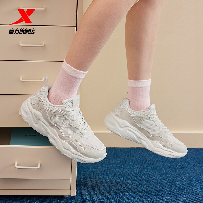 特步星火休闲鞋男鞋冬季革面轻便百搭厚底增高女鞋革网正品运动鞋