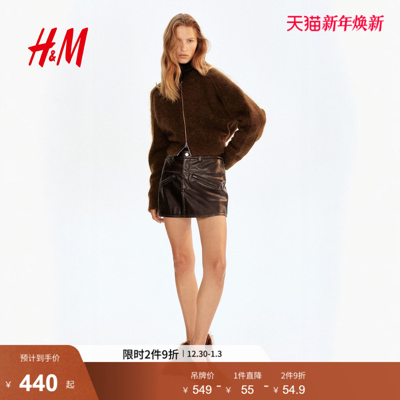 HM女装毛针织衫2025冬季新款V领马海毛混纺宽松拉链开衫1310686
