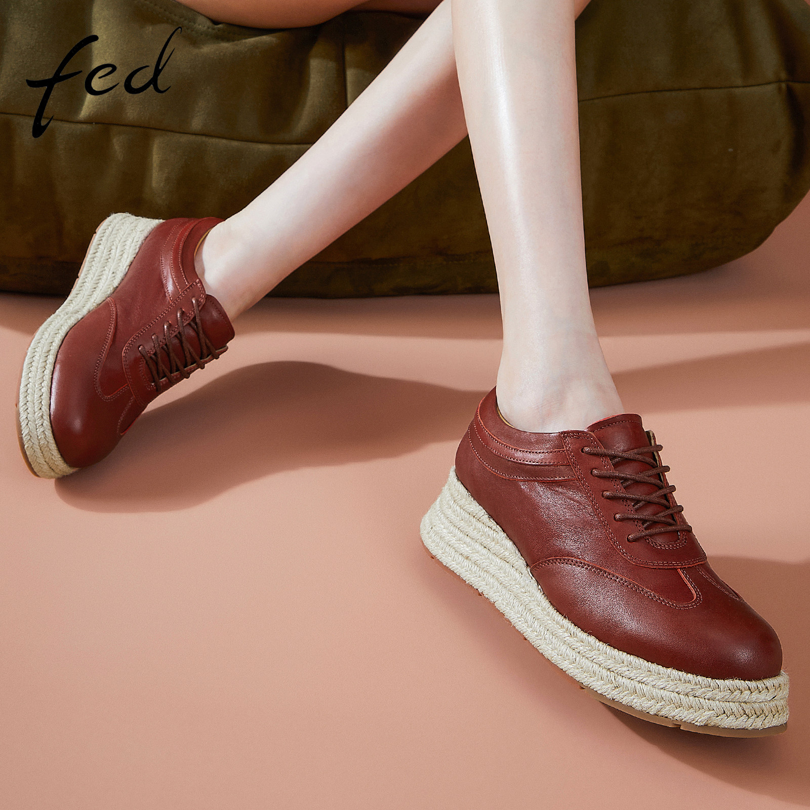 fed厚底增高鞋秋季新款女鞋坡跟休闲鞋深口单鞋女款D0816-ZFB605