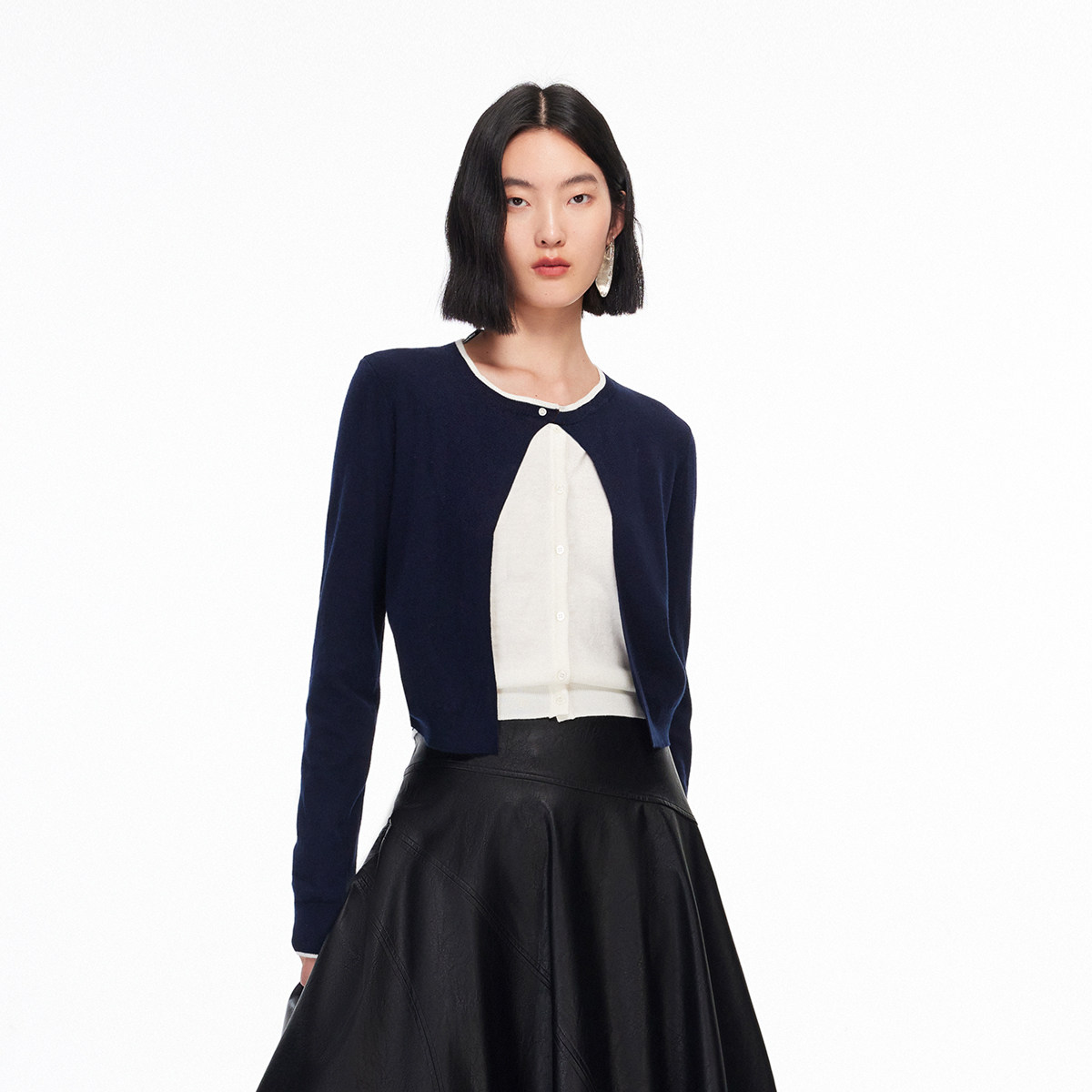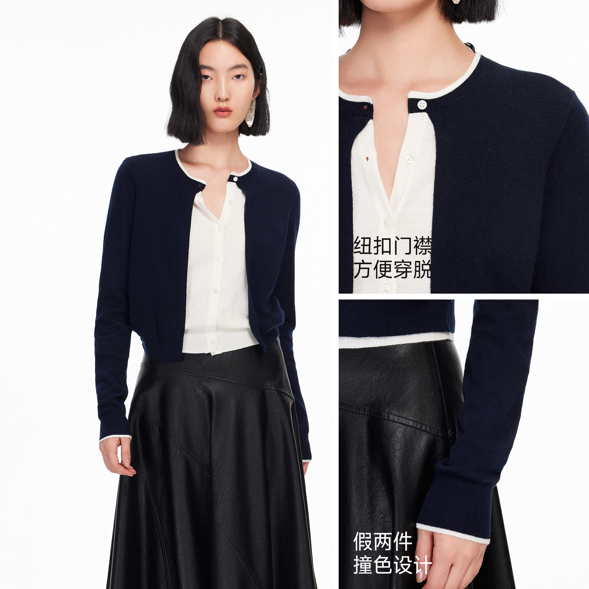 Vero Moda针织衫2026春季新款含绵羊毛拼接撞色纽扣修身针织开衫