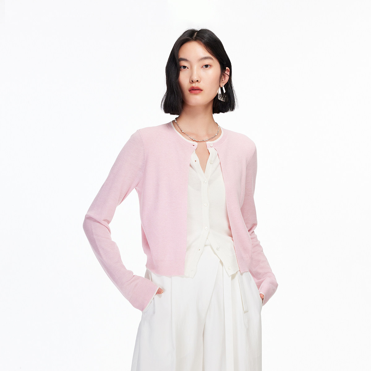 2026新款女装宽松针织开衫纯棉春秋外套纯色百搭圆领毛衣针织衫潮
