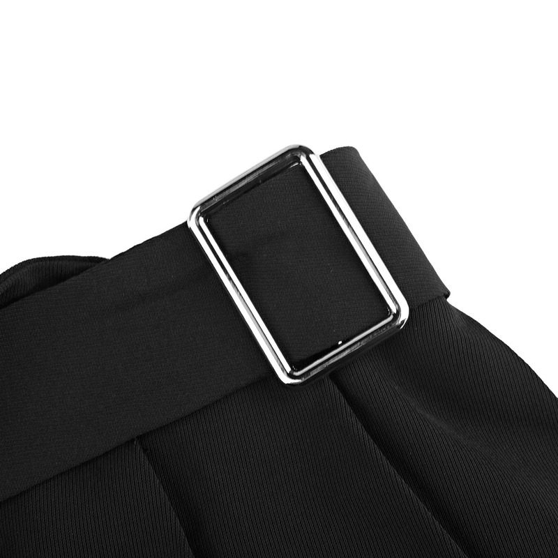 sdeer圣迪奥女装秋休闲拼接收腰百褶黑色长裙S233Z1133