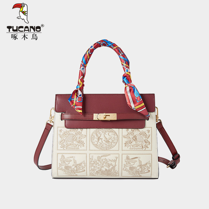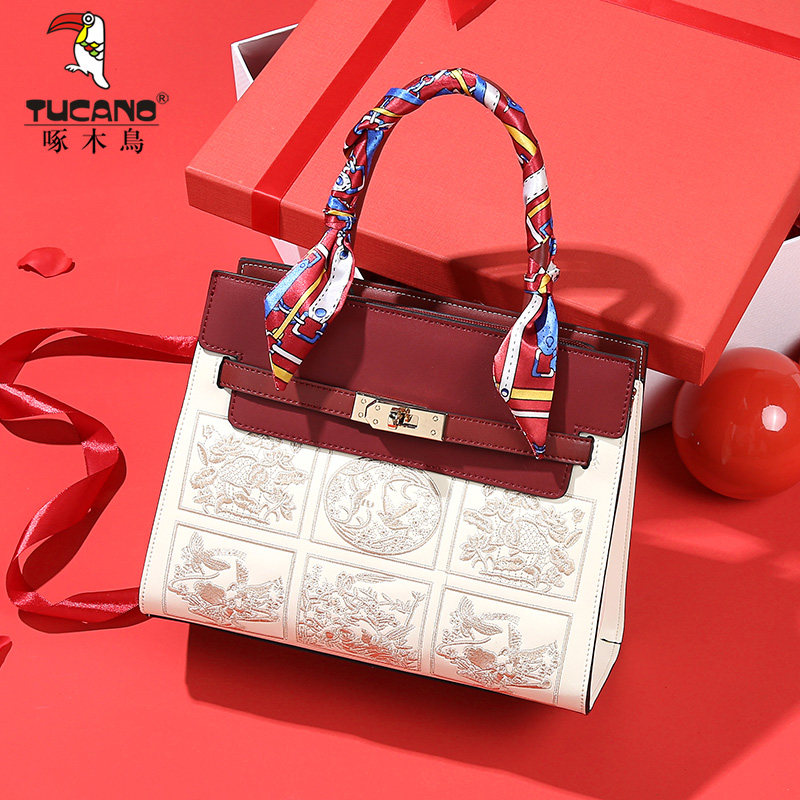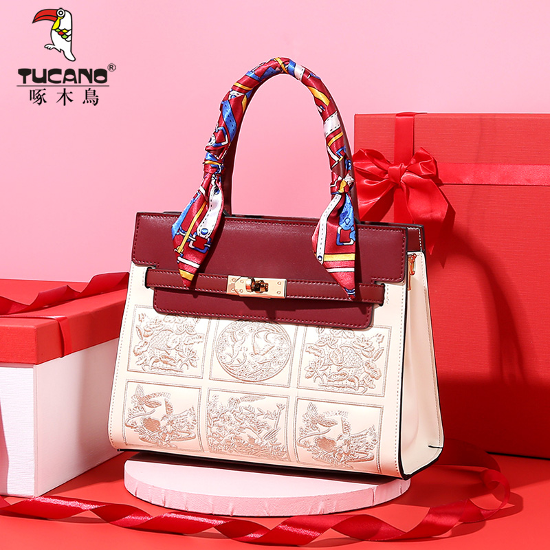 啄木鸟真皮女包2025新款国风时尚送妈妈大气喜婆婆婚包手提包斜挎