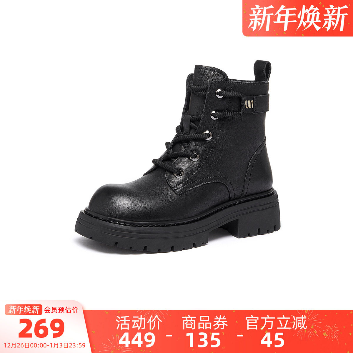 天美意复古英伦风厚底加绒马丁靴女鞋子冬新款休闲短靴皮靴时装靴