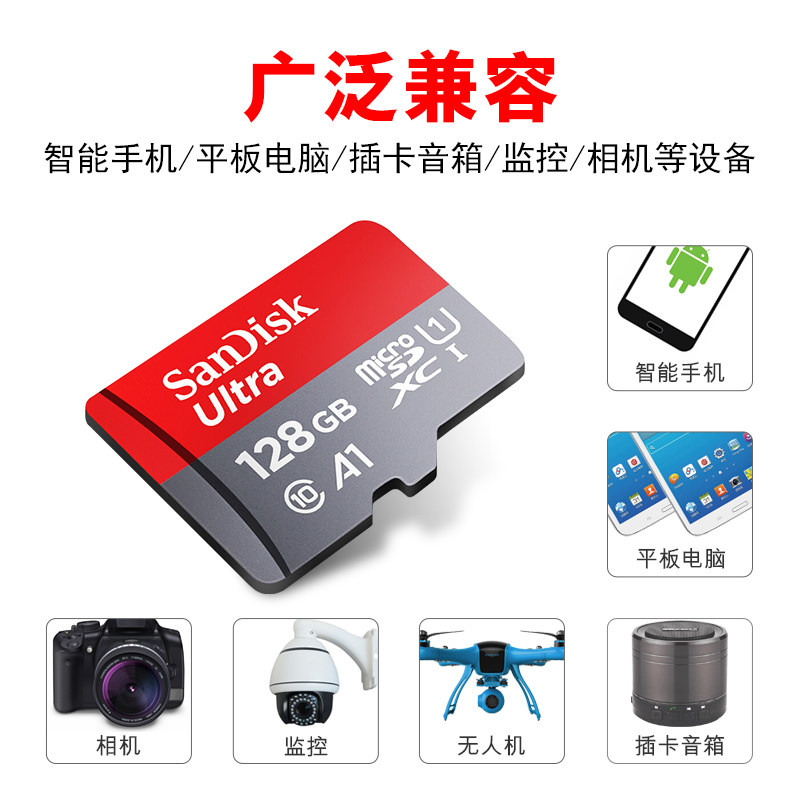 闪迪128g内存卡tf手机switch储存卡监控摄像头行车记录仪sd卡256g