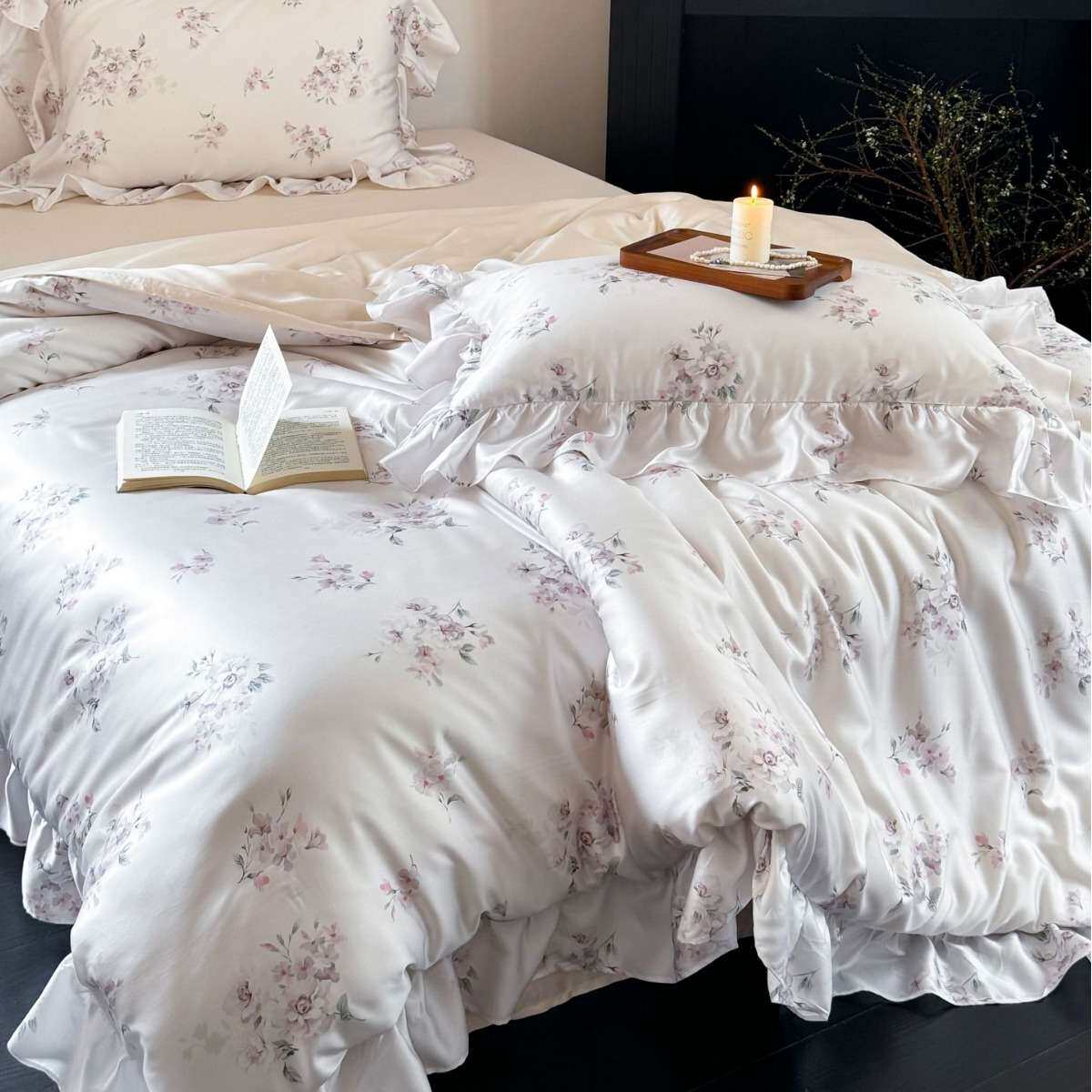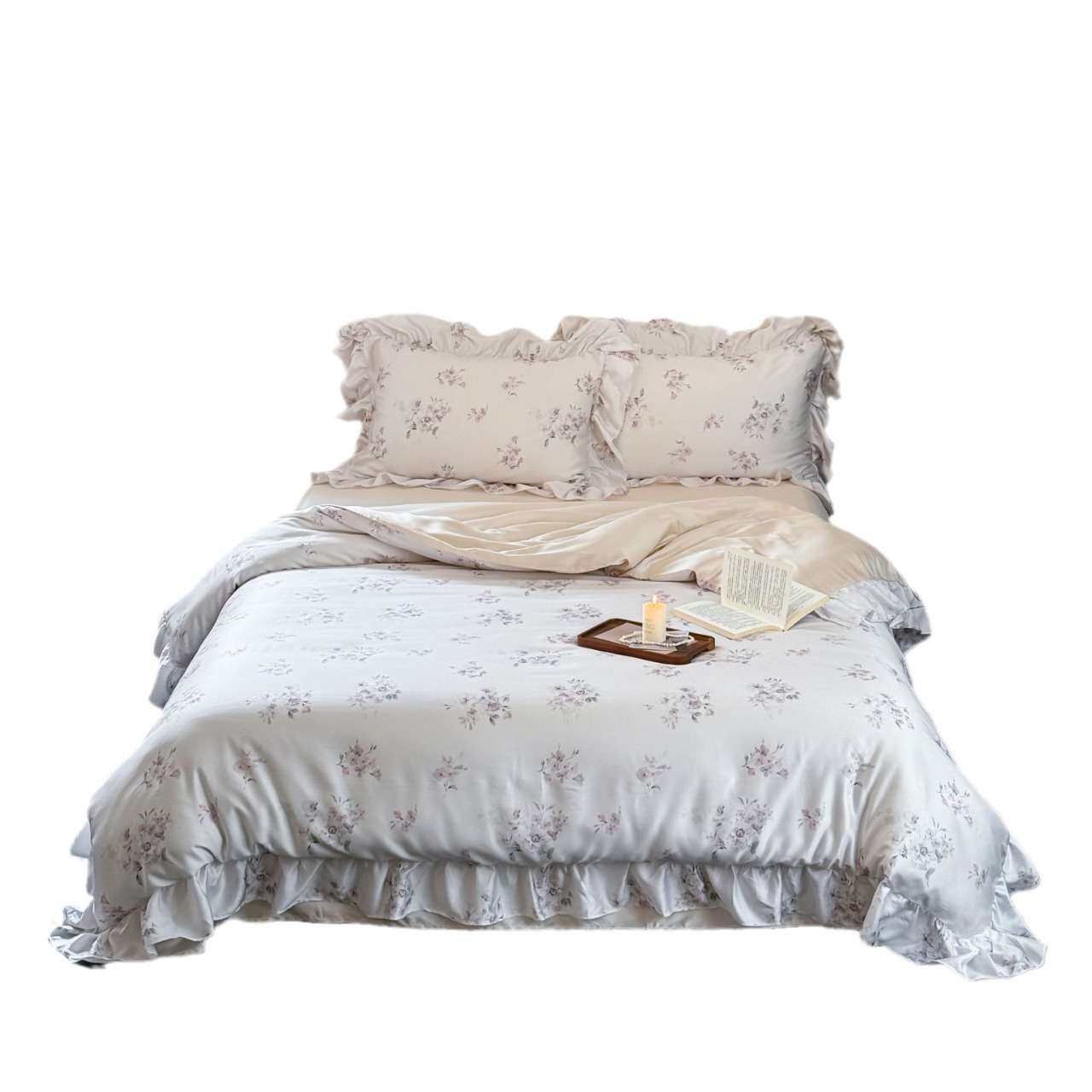 夏季凉感奥地利兰精天丝刺绣冰丝公主风床单被套床上用品套件