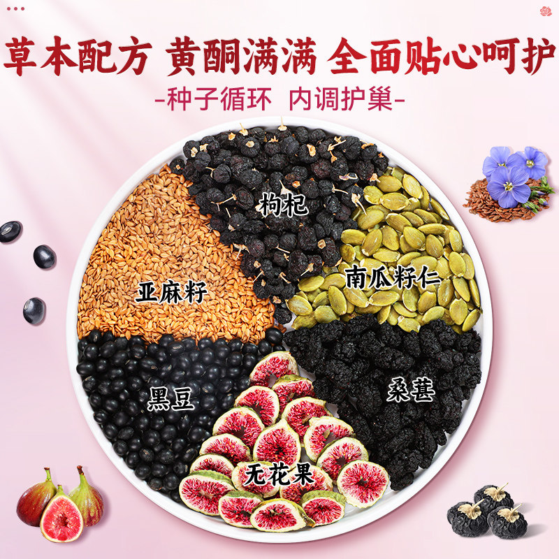 亚麻籽无花果黑豆枸杞桑葚种子循环补充生茶包黄体酮养生茶养雌茶