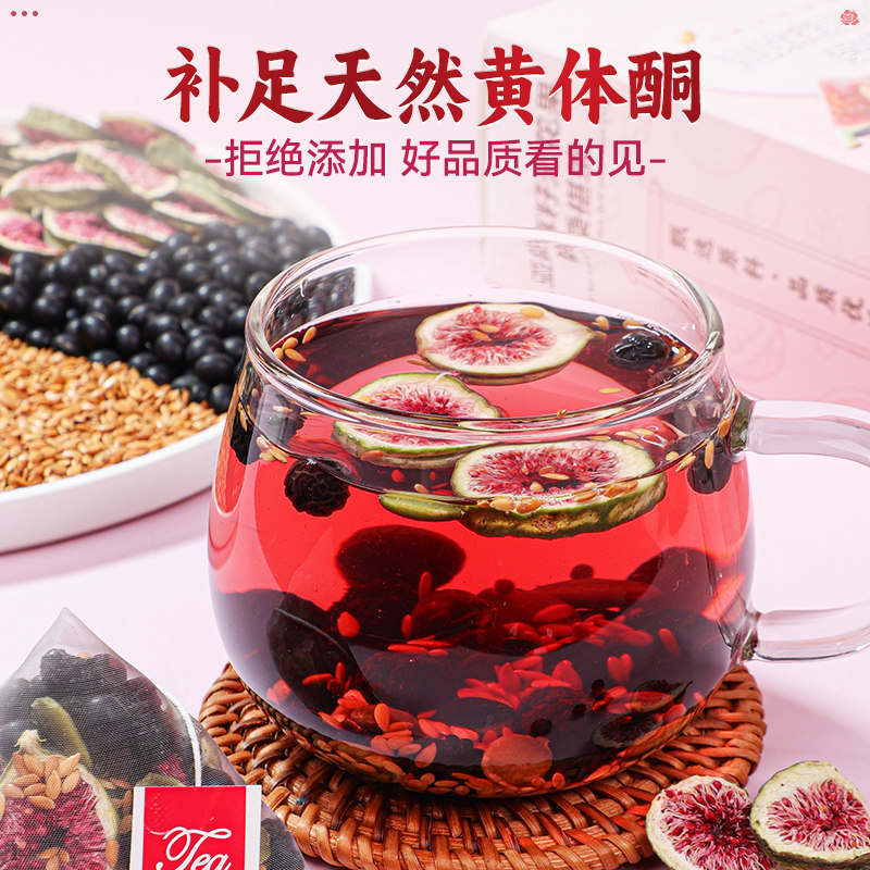 亚麻籽无花果干黄体酮黑豆枸杞桑葚养雌茶包女生泡水喝补充雌激素