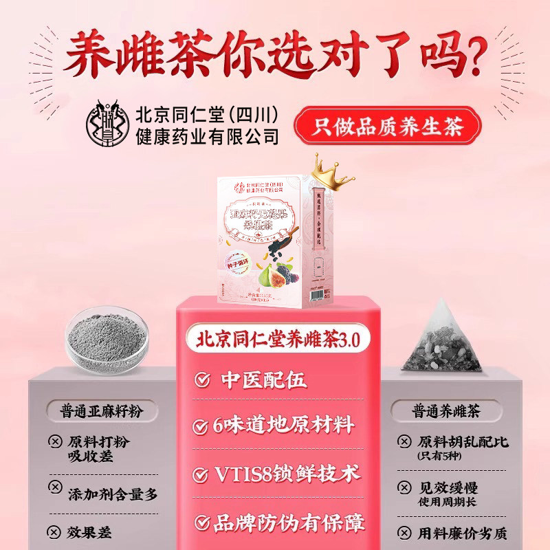 北京同仁堂黄体酮养雌茶亚麻籽无花果干女生黑豆黑枸杞桑葚养生茶