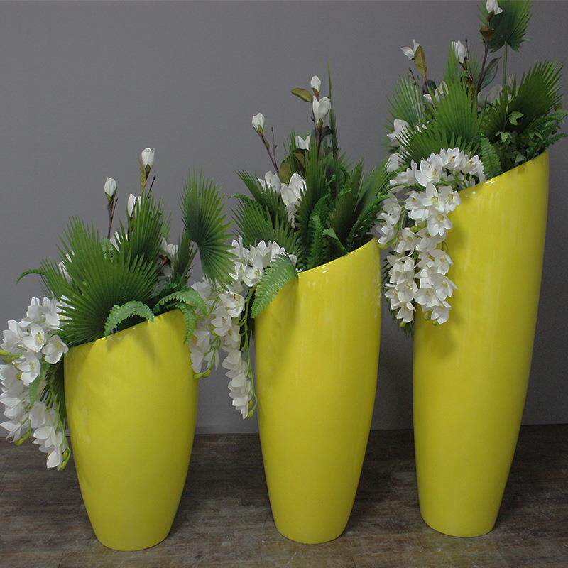 玻璃钢花盆简约斜口花钵商场装饰摆件售楼部花瓶户外组合花器美陈