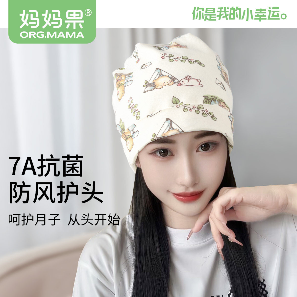 妈妈果产妇月子帽春夏7月份8孕妇帽子产后防风帽夏季薄款头巾发带