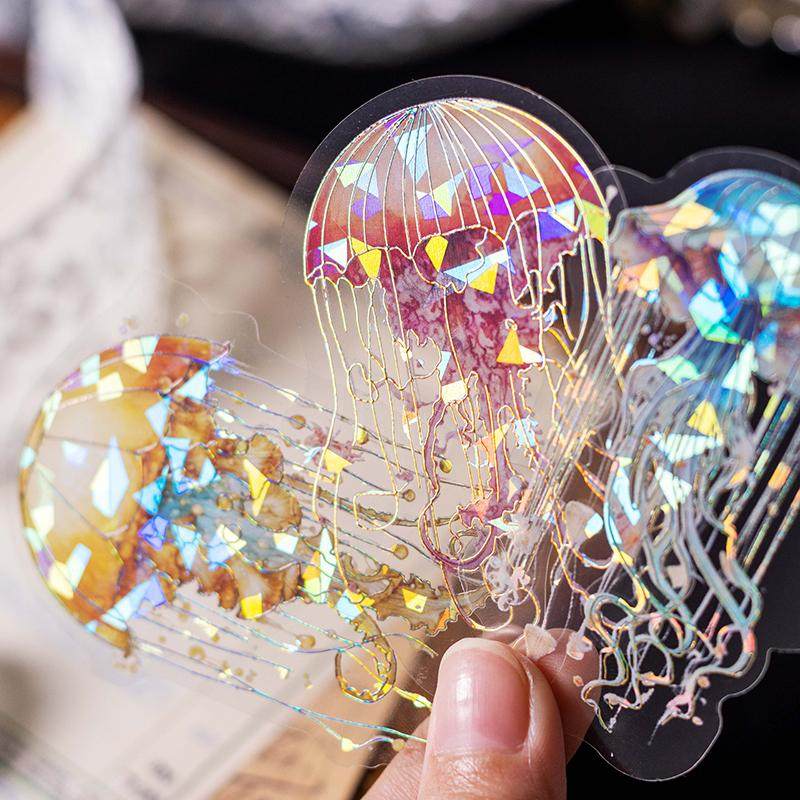 海洋之境系列PET镭射贝壳光海底世界素材水母贴纸手账DIY装饰贴画